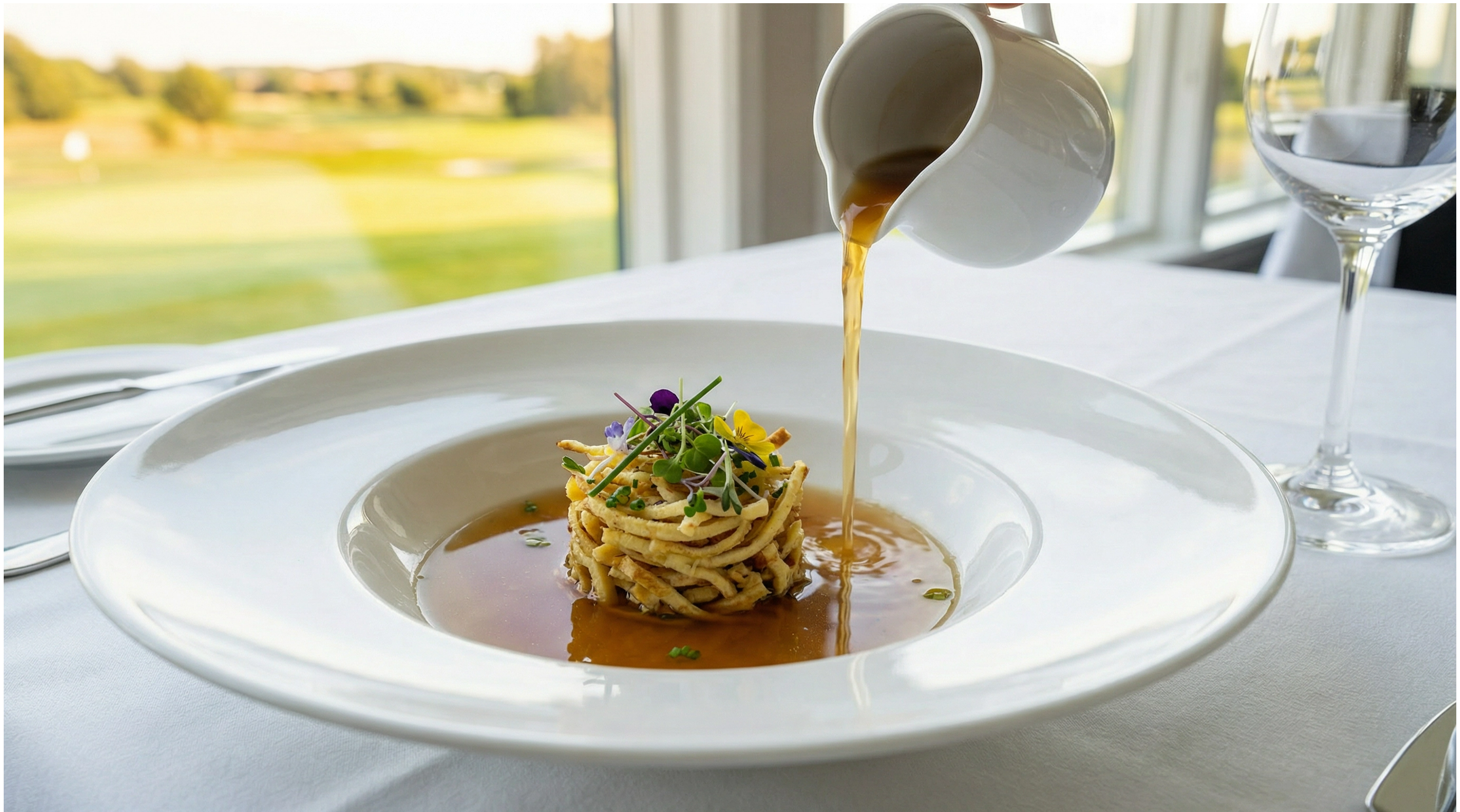 Michael Hoffmann schöpft Inspiration aus seinen bayerischen Wurzeln und interpretiert traditionelle Rezepte auf moderne Weise. Das Ergebnis ist eine raffinierte deutsch-österreichische Küche, die höchsten Wert auf saisonale Produkte aus der Region und Qualität legt. Ob ein leichter Lunch nach der Golfrunde oder ein mehrgängiges Menü zu besonderen Anlässen – freuen Sie sich auf unvergessliche Genussmomente in stilvollem Ambiente mit Blick ins Grüne.